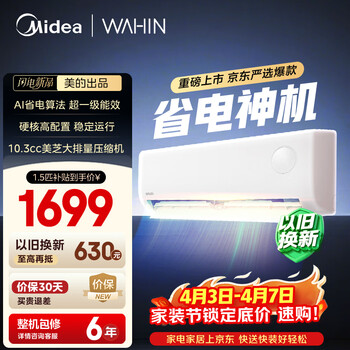【京东】美的出品空调 省电神机大1.5匹一级能效 变频空调挂机第五代自清洁【百亿补贴】